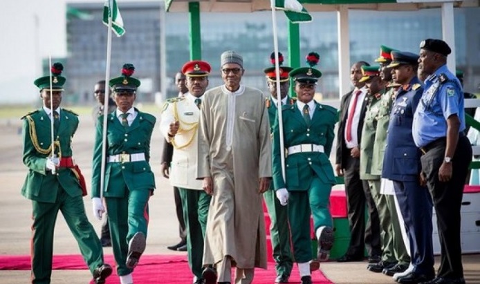 Nigerian President Muhammadu Buhari Muhammadu Buhari returned late on Sunday evening to Abuja from London where he spent 13 days for health reasons. Speaking to reporters, the former military dictator said “I’m fine. I’m in good shape. You can see me inspect the guards of honor. Now you can do the assessment yourself”.